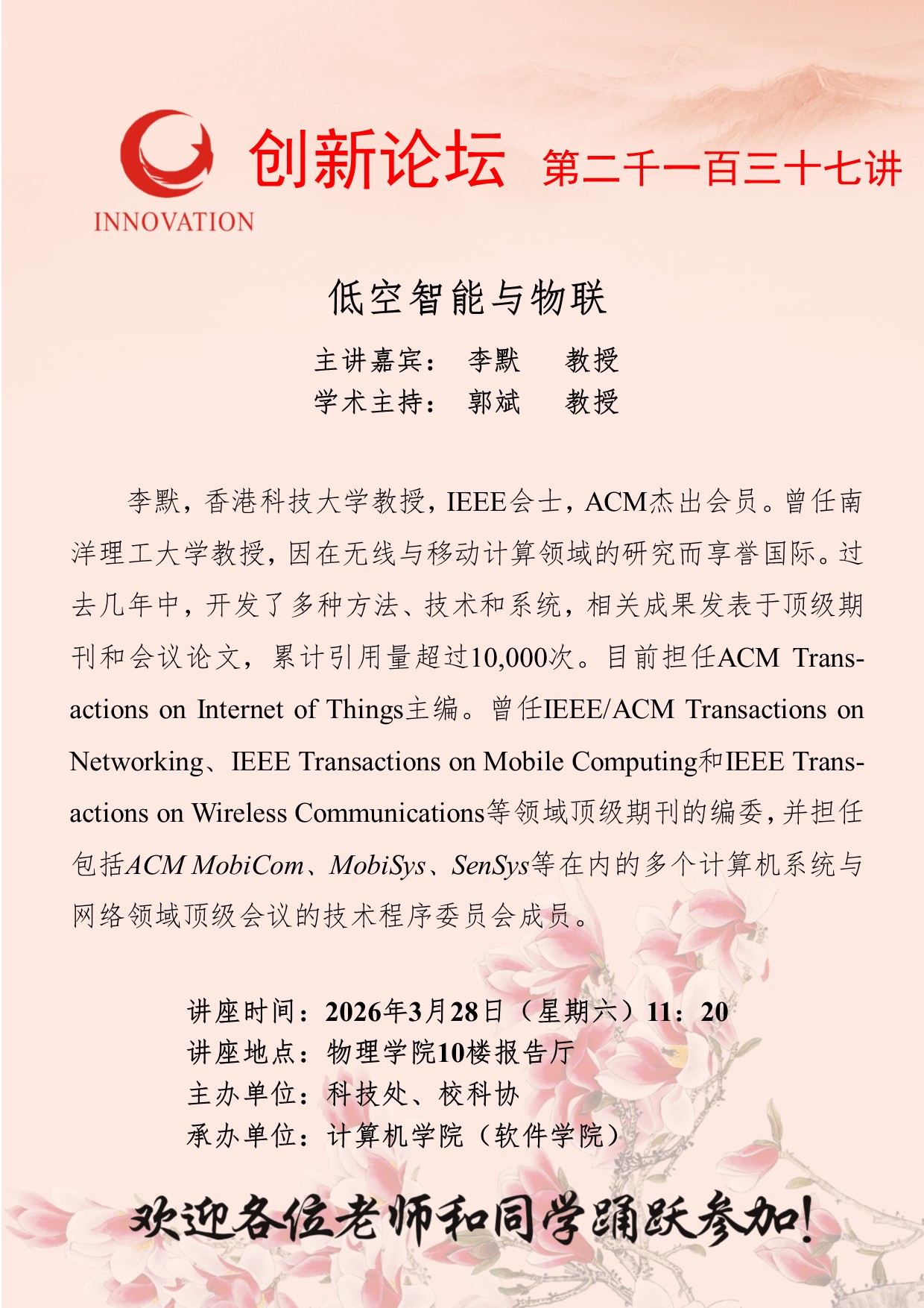 美加墨世界杯官网创新论坛第二千一百三十七讲:低空智能与物联