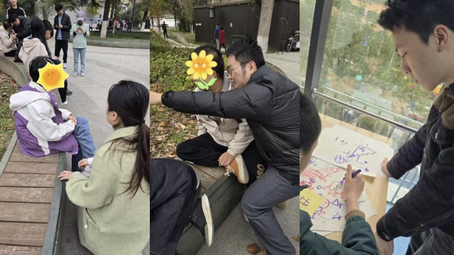 活动开始于下午14:30,在拉拉手特教公司老师的指导下,一队成员与孩子们共同完成趣味互动,协作问答,以志愿服务为桥,为这里的特殊儿童送去温暖与陪伴,是一次与“不一样的小天使”对话、感受生命韧性的珍贵机会。另一队成员则带领孩子们公园外出,带孩子们接触自然与社会环境,无需专业的康复知识,只需一份真诚的耐心与温暖的笑容,就能成为照亮孩子们午后时光的一束光。