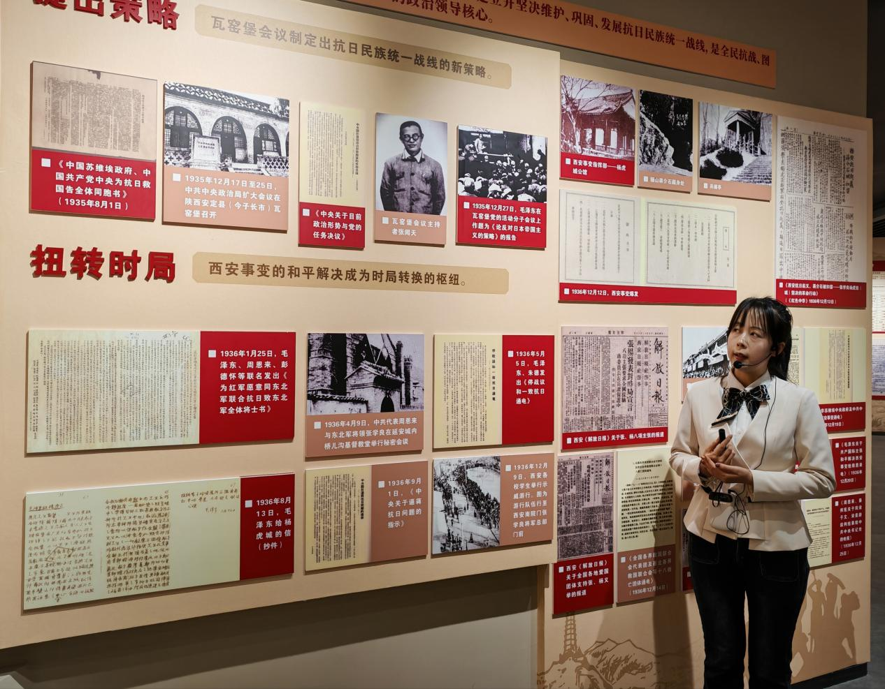 在陕西省档案馆讲解员的带领下,团队成员依次参观了“民族危亡”“中流砥柱”“抗战心脏”“陕西作为”“不能忘却”“走向复兴”六个展区,通过翔实的文字史料、珍贵的历史照片、生动的场景复原、多媒体演示等多种形式,全方位、多角度再现了中国人民抗日战争的壮阔历程。每一幅图片、每一件文物、每一段讲解,都深深震撼着在场每一位同学的心灵。