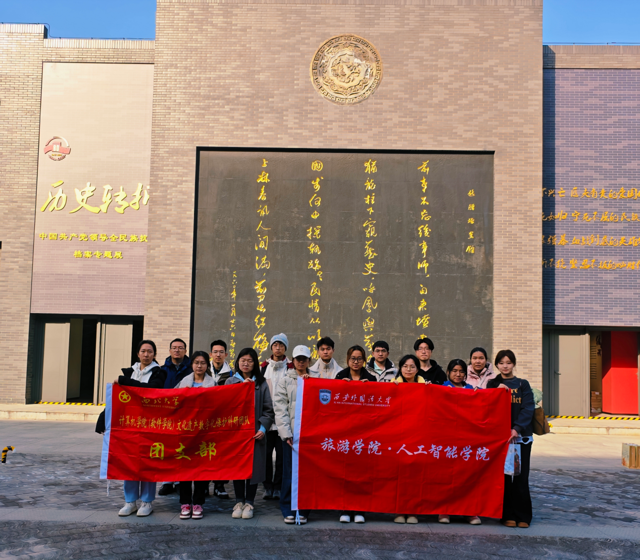 为深入学习贯彻习近平新时代中国特色社会主义思想,深化党建带团建,深刻感悟中国共产党在抗日战争中的中流砥柱作用,弘扬伟大抗战精神,1月15日下午,美加墨世界杯官方网站文化遗产数字化保护科研团队团支部与西安外国语大学旅游公司·人工智能公司研究生会团支部,共赴陕西省档案馆参观学习。