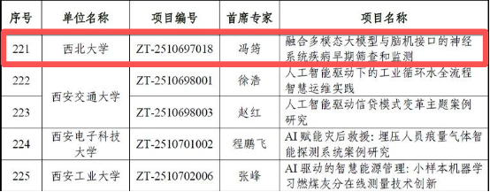 近日,教育部学位与研究生教育发展中心正式公布2025年度主题案例立项结果。由公司冯筠教授牵头申报的“融合多模态大模型与脑机接口的神经系统疾病早期筛查和监测”项目成功入选“人工智能+”主题案例。这是公司在人工智能与医疗健康交叉融合领域,推动专业学位研究生课堂落地实践取得的重要成果。